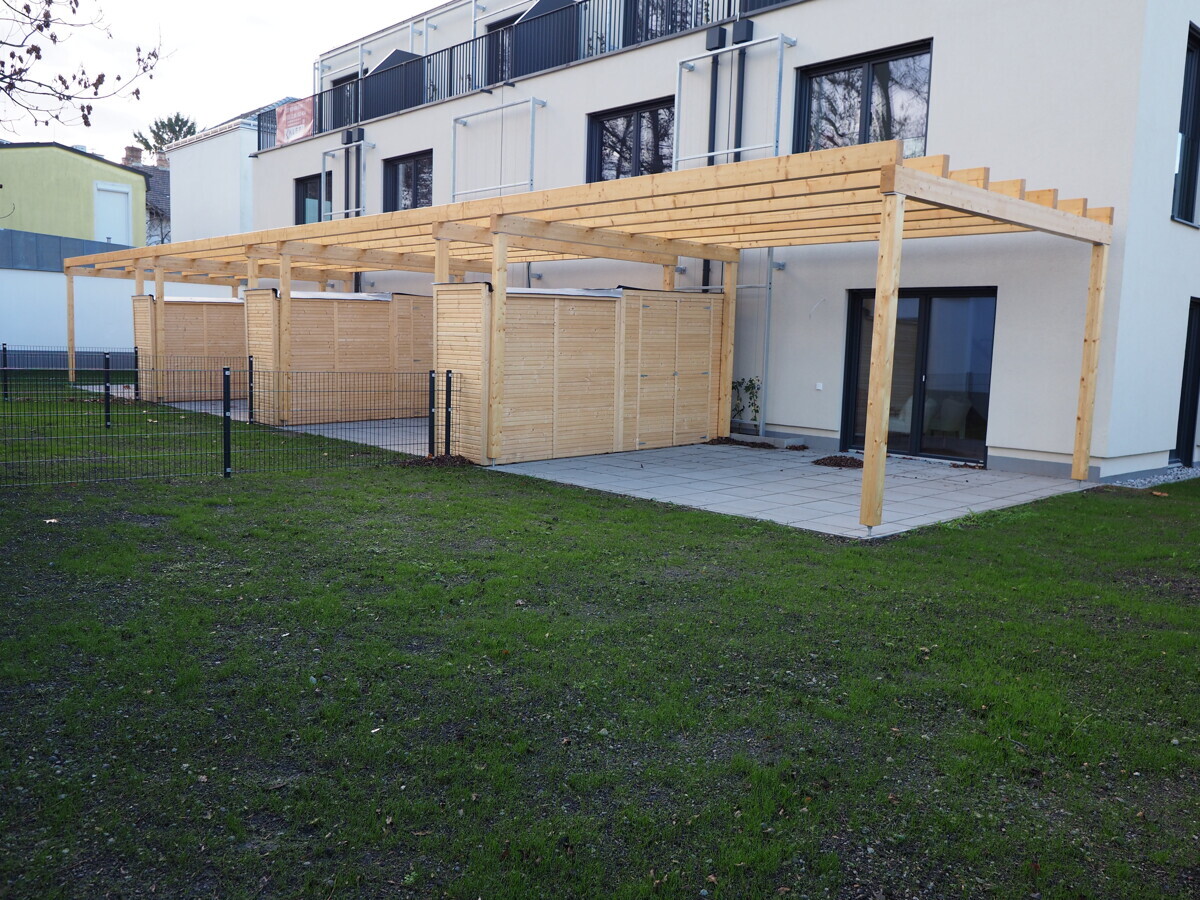 von der Garage kommt man mittels Aufzug oder Außentreppen in den oberen Bereich. Mehrere Stellplätze für Fahrräder sind vorhanden.